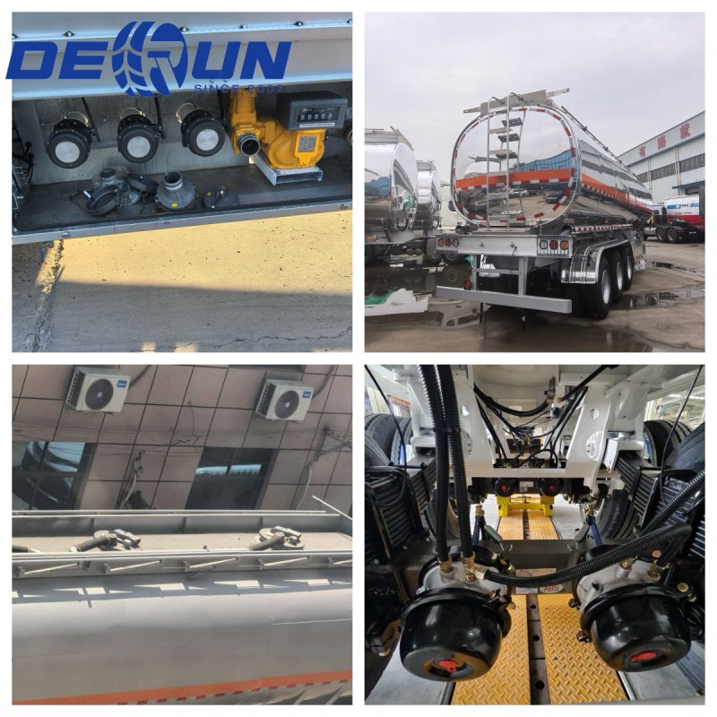 Derani kolmeteljelisel alumiiniumsulamist õlimahuti poolhaagis on alumiiniumist sulamist valmistatud paagi korpus, mis pakub kerget ehitust ja korrosioonikindlust. Sisemised slosh-vastased plaadid ja sektsioonid suruvad tõhusalt vedeliku liikumist, suurendades stabiilsust transpordi ajal. Ülemine on varustatud kaevukatte ja aurude taastamise liides, samas kui põhjas on pneumaatiline hädapiduriklapp, mis kõik vastavad Argentina laadimis- ja mahalaadimismäärustele. Valge peegeldav kate vähendab temperatuuri tõusu päikesevalgusest, minimeerides kütuse aurustumise kadusid. Paagisaba sisaldab reserveeritud liidest vedelate andurite jaoks, hõlbustades klientide intelligentsete seiresüsteemide tulevikku.