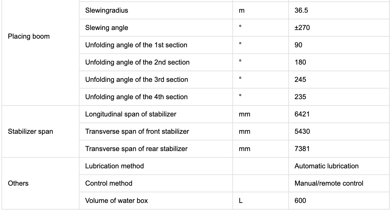 Mitu arenenud tehnoloogiat: Sany's Boom Pump integreerib mitmesuguseid täiustatud tehnoloogiaid, näiteks ühe nupuga buumi positsioneerimise tehnoloogia, intelligentse buumi vibratsiooni vähendamise tehnoloogia, energiasäästlike tehnoloogia ja rotatsioonivastane tõrje tehnoloogia. Putzmeisteri tehnoloogiaga integreeritud intelligentne poomi vibratsiooni vähendamise tehnoloogia vähendab pumpamise ajal tõhusalt poomi vibratsiooni, amplituud vähendab 50%; Putzmeisteri tehnoloogiaga integreeritud energiasäästlik tehnoloogia saavutab 29 suunamuutust minutis (süsteemi rõhu korral 12 MPa), parandades pumpamise efektiivsust 25% ja vähendades kütusekulu 10%; Pöörlemisvastane juhtimistehnoloogia kasutab pöörlemispidurdustehnoloogiat, vähendades poomi pöörleva pöörde amplituudi 60%.
